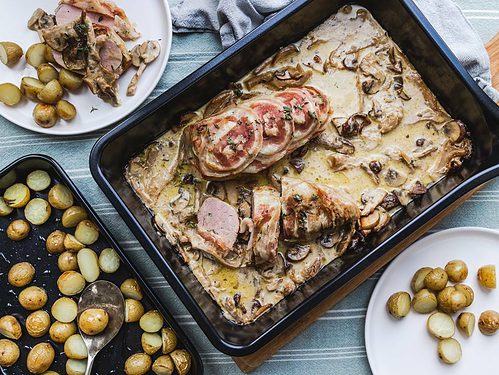 Varkenshaas uit de oven met champignonsaus
